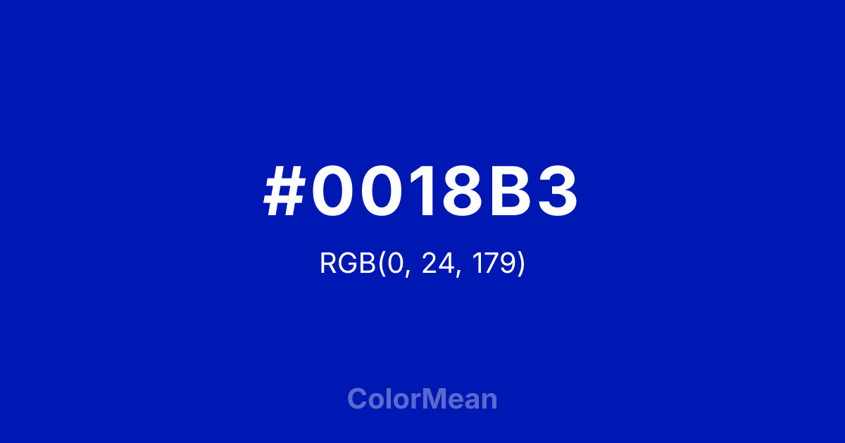 Color swatch image showing #0018B3 with RGB(0,24,179) values