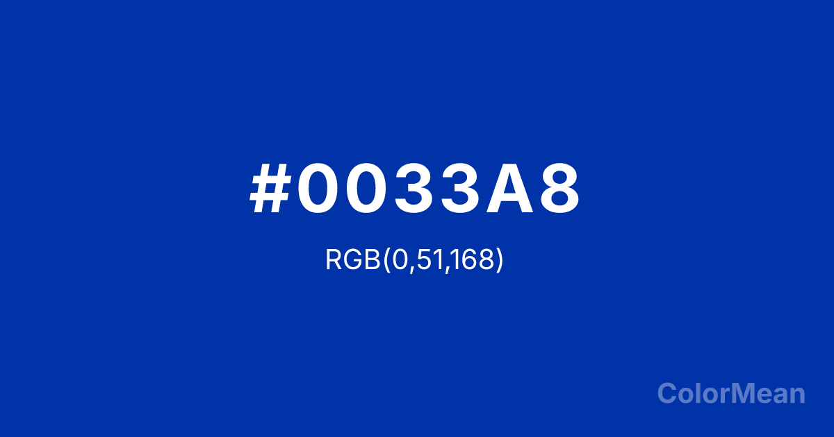 Color swatch image showing #0033A8 with RGB(0,51,168) values