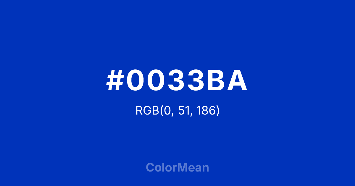 Color swatch image showing #0033BA with RGB(0,51,186) values