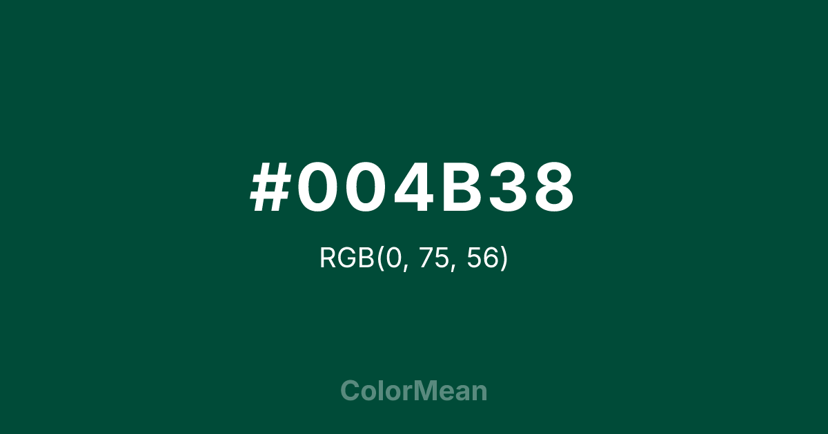 Color swatch image showing #004B38 with RGB(0,75,56) values