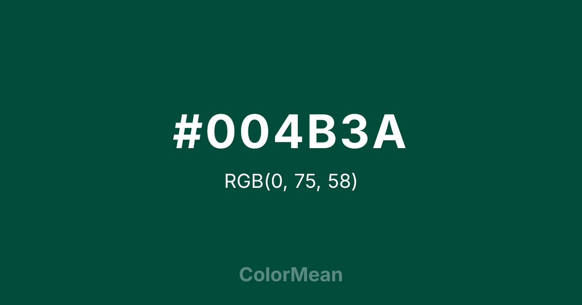 Color swatch image showing #004B3A with RGB(0,75,58) values