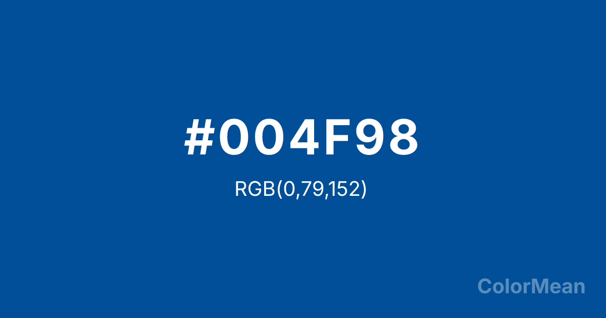 Convert USAFA Blue (#004F98) across different color models and formats. These conversions help designers work seamlessly between digital and print media, ensuring this color maintains its intended appearance across RGB screens, CMYK printers, and HSL color manipulations.