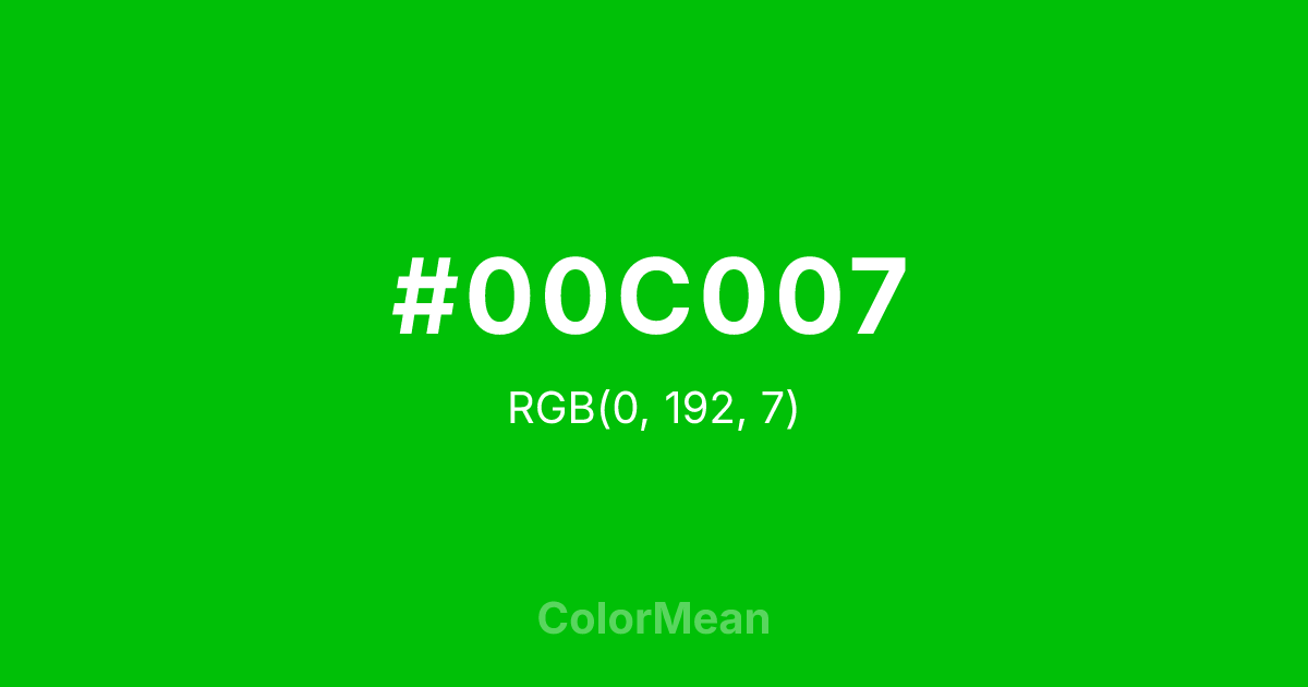 Everything you need to know about #00C007 including values, color harmonies, shades, meanings, and applications in design, branding, and everyday visuals.