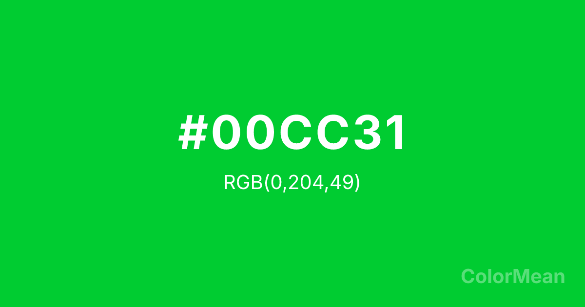 Color swatch image showing #00CC31 with RGB(0,204,49) values