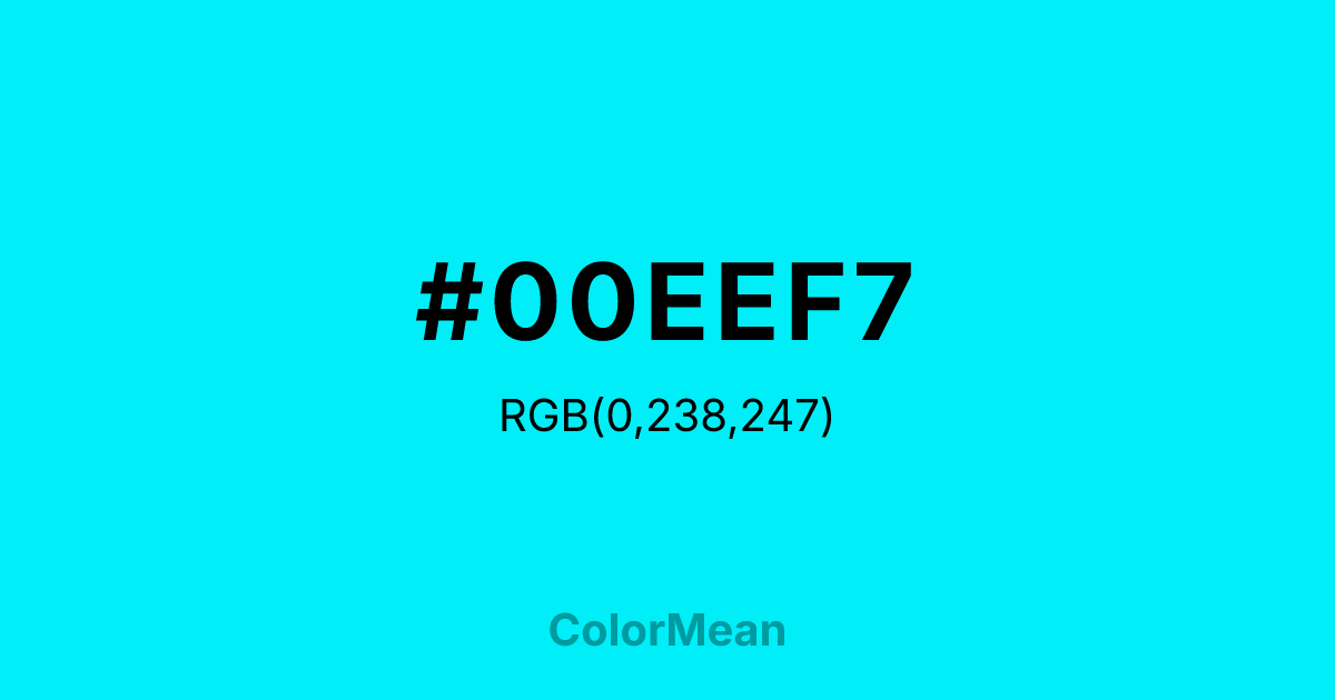 Color swatch image showing #00EEF7 with RGB(0,238,247) values