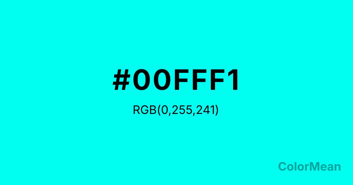 Color swatch image showing #00FFF1 with RGB(0,255,241) values