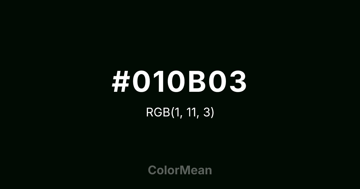 Color swatch image showing #010B03 with RGB(1,11,3) values