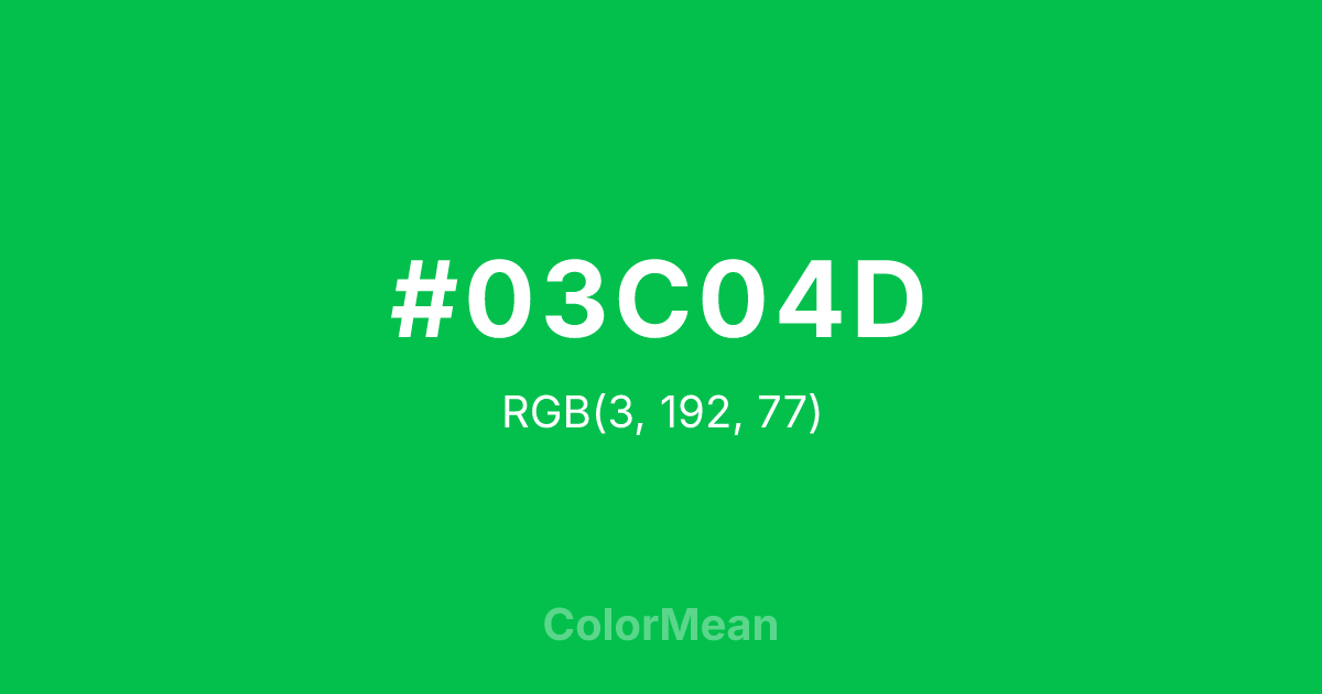 Color swatch image showing #03C04D with RGB(3,192,77) values