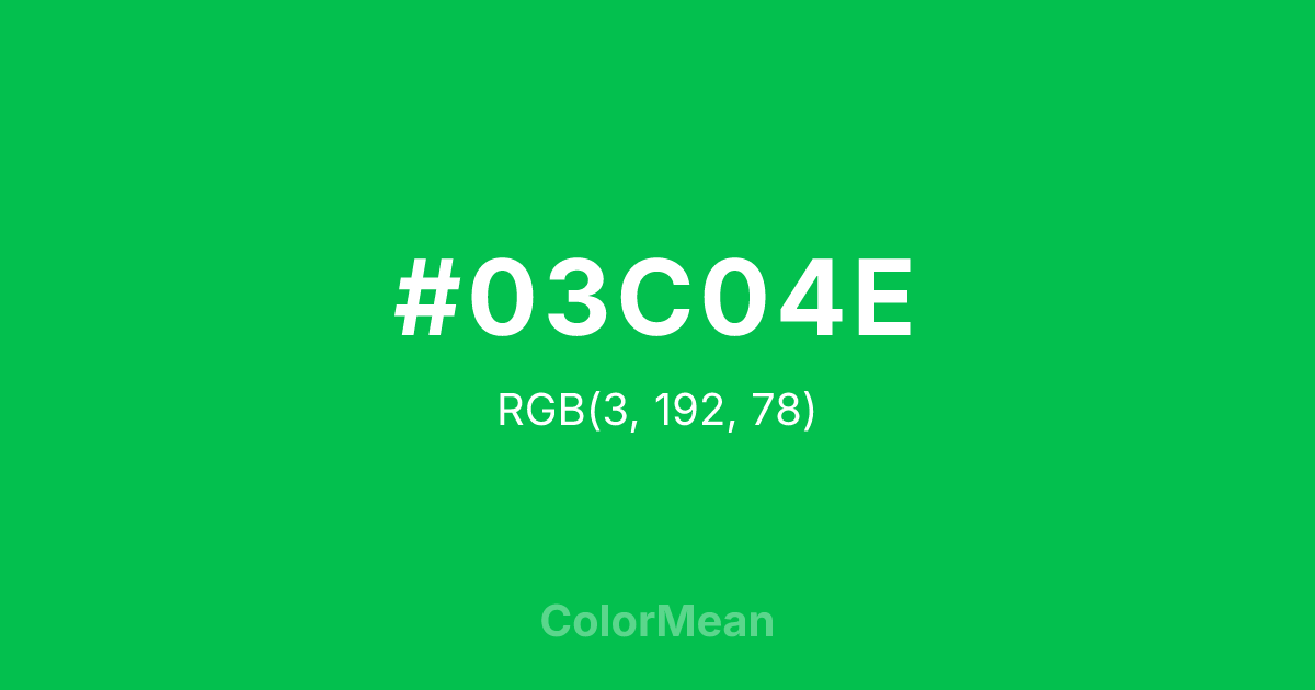 Color swatch image showing #03C04E with RGB(3,192,78) values