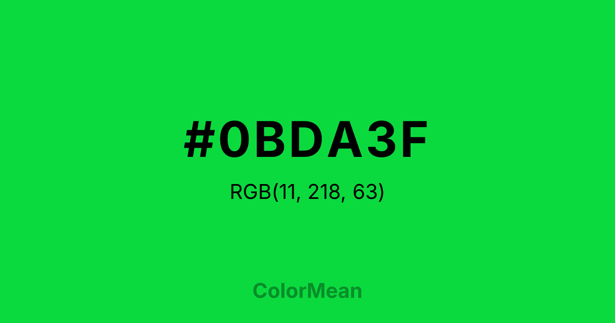 Color swatch image showing #0BDA3F with RGB(11,218,63) values