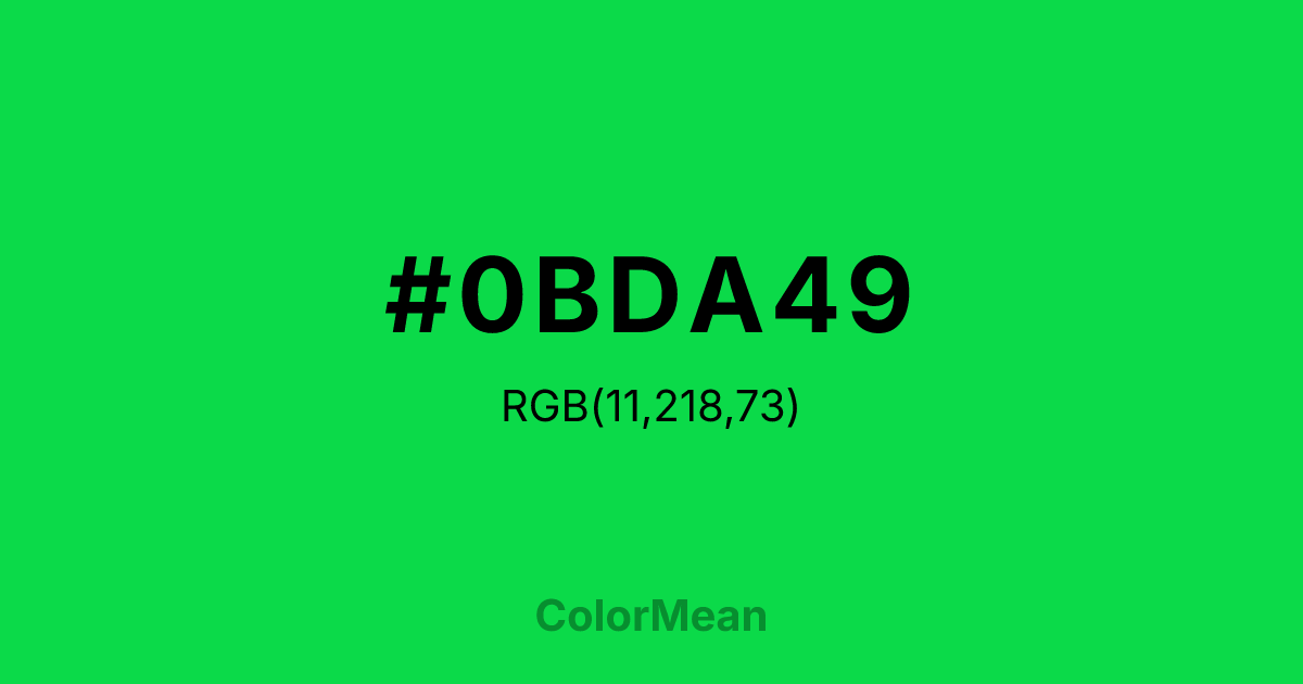 Color swatch image showing #0BDA49 with RGB(11,218,73) values