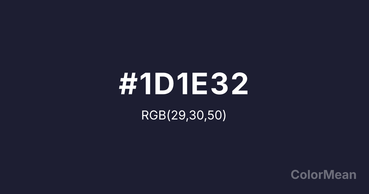 #1D1E32 RGB value is (29, 30, 50). The hex color red value is 29, green is 30, and blue is 50. Its HSL format shows a hue of 237°, saturation of 27 percent, and lightness of 15 percent. The CMYK process values are 42 percent, 40 percent, 0 percent, 80 percent.