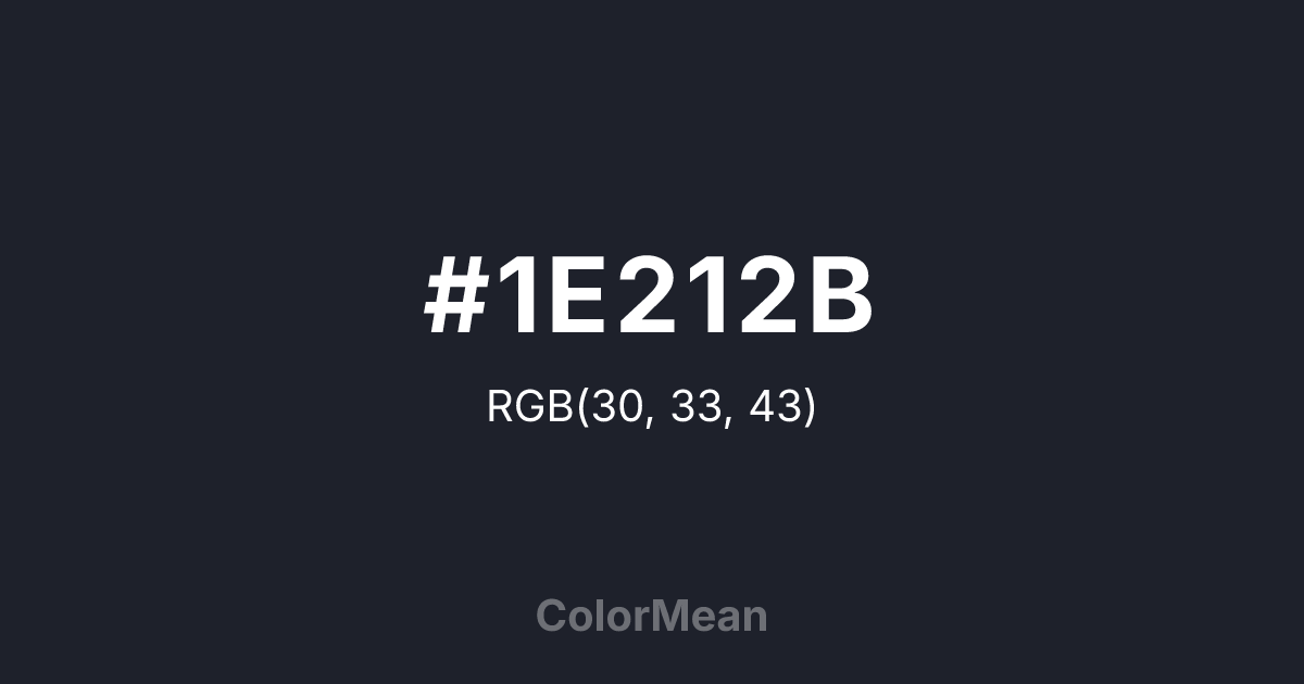 #1E212B RGB value is (30, 33, 43). The hex color red value is 30, green is 33, and blue is 43. Its HSL format shows a hue of 226°, saturation of 18 percent, and lightness of 14 percent. The CMYK process values are 30 percent, 23 percent, 0 percent, 83 percent.