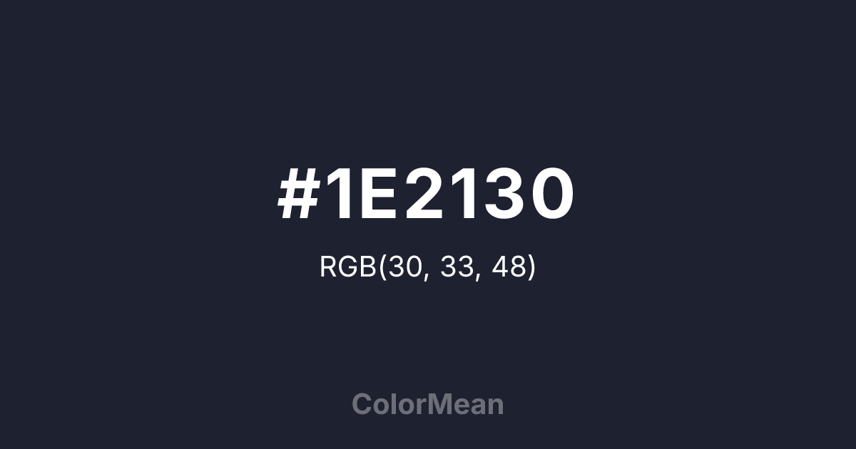 #1E2130 RGB value is (30, 33, 48). The hex color red value is 30, green is 33, and blue is 48. Its HSL format shows a hue of 230°, saturation of 23 percent, and lightness of 15 percent. The CMYK process values are 37 percent, 31 percent, 0 percent, 81 percent.