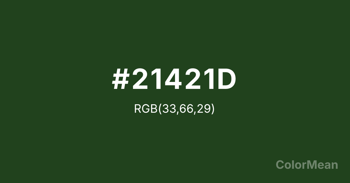 Color swatch image showing #21421D with RGB(33,66,29) values