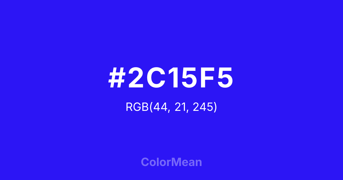 Color swatch image showing #2C15F5 with RGB(44,21,245) values