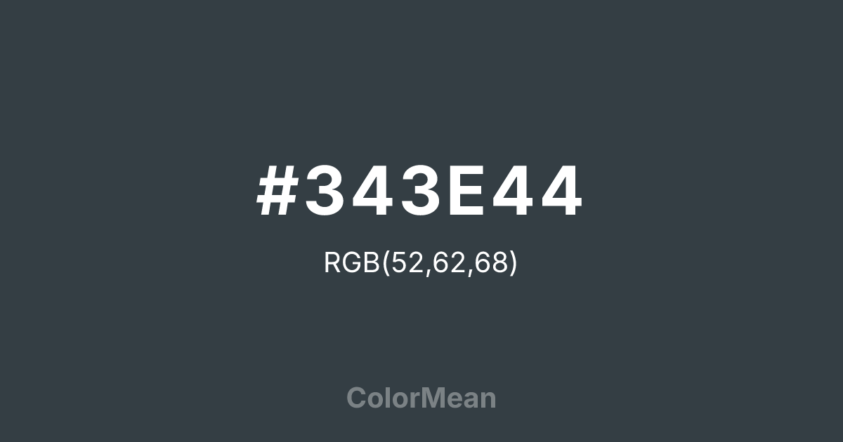 Color swatch image showing #343E44 with RGB(52,62,68) values