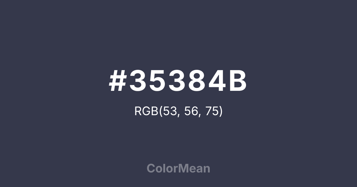 #35384B RGB value is (53, 56, 75). The hex color red value is 53, green is 56, and blue is 75. Its HSL format shows a hue of 232°, saturation of 17 percent, and lightness of 25 percent. The CMYK process values are 29 percent, 25 percent, 0 percent, 71 percent.