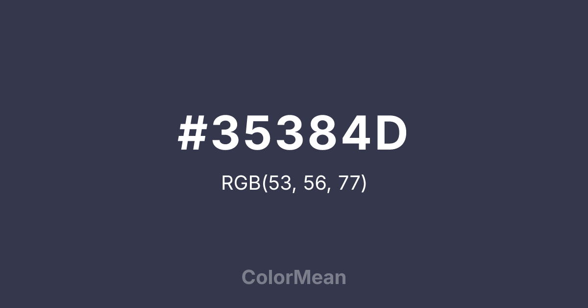 #35384D RGB value is (53, 56, 77). The hex color red value is 53, green is 56, and blue is 77. Its HSL format shows a hue of 233°, saturation of 18 percent, and lightness of 25 percent. The CMYK process values are 31 percent, 27 percent, 0 percent, 70 percent.
