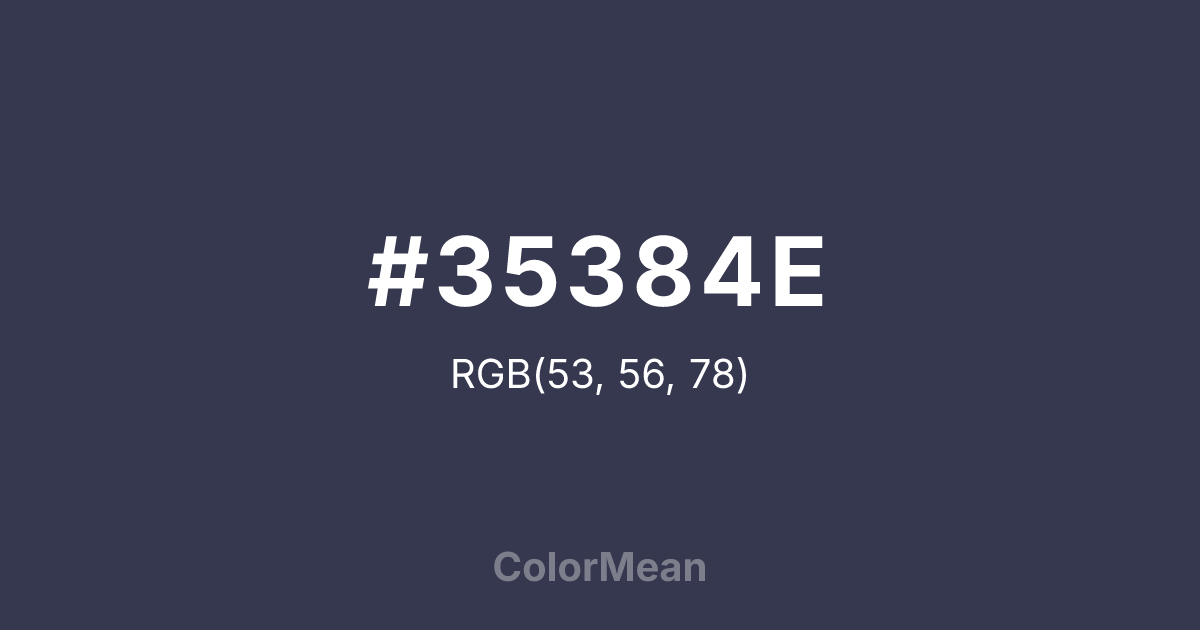 #35384E RGB value is (53, 56, 78). The hex color red value is 53, green is 56, and blue is 78. Its HSL format shows a hue of 233°, saturation of 19 percent, and lightness of 26 percent. The CMYK process values are 32 percent, 28 percent, 0 percent, 69 percent.