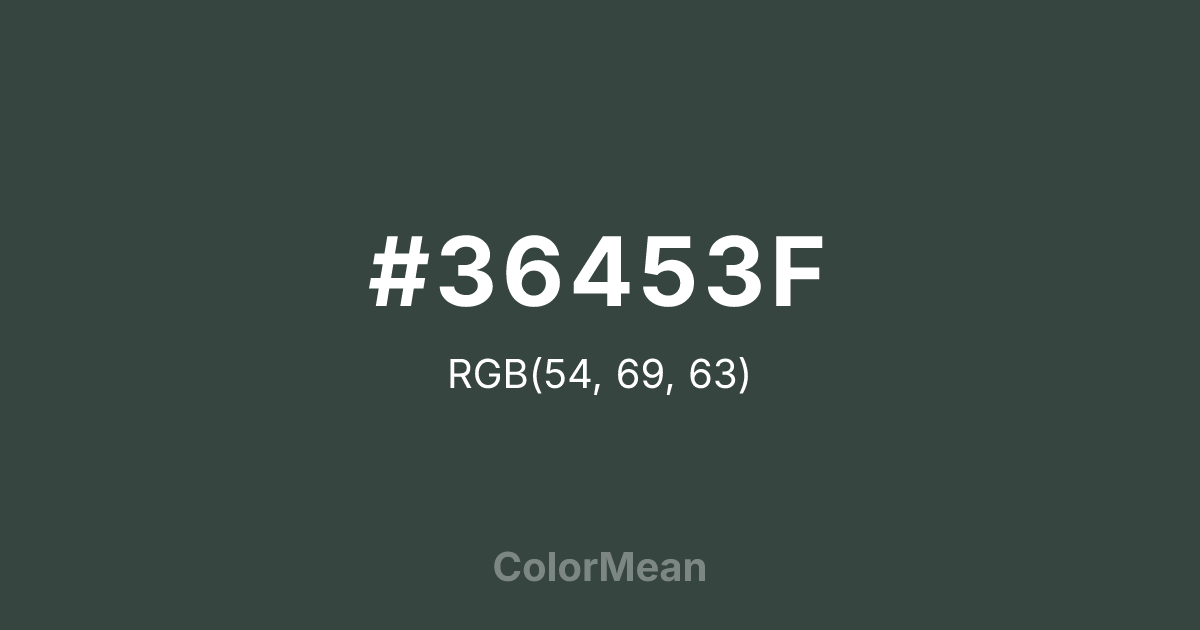 Color swatch image showing #36453F with RGB(54,69,63) values