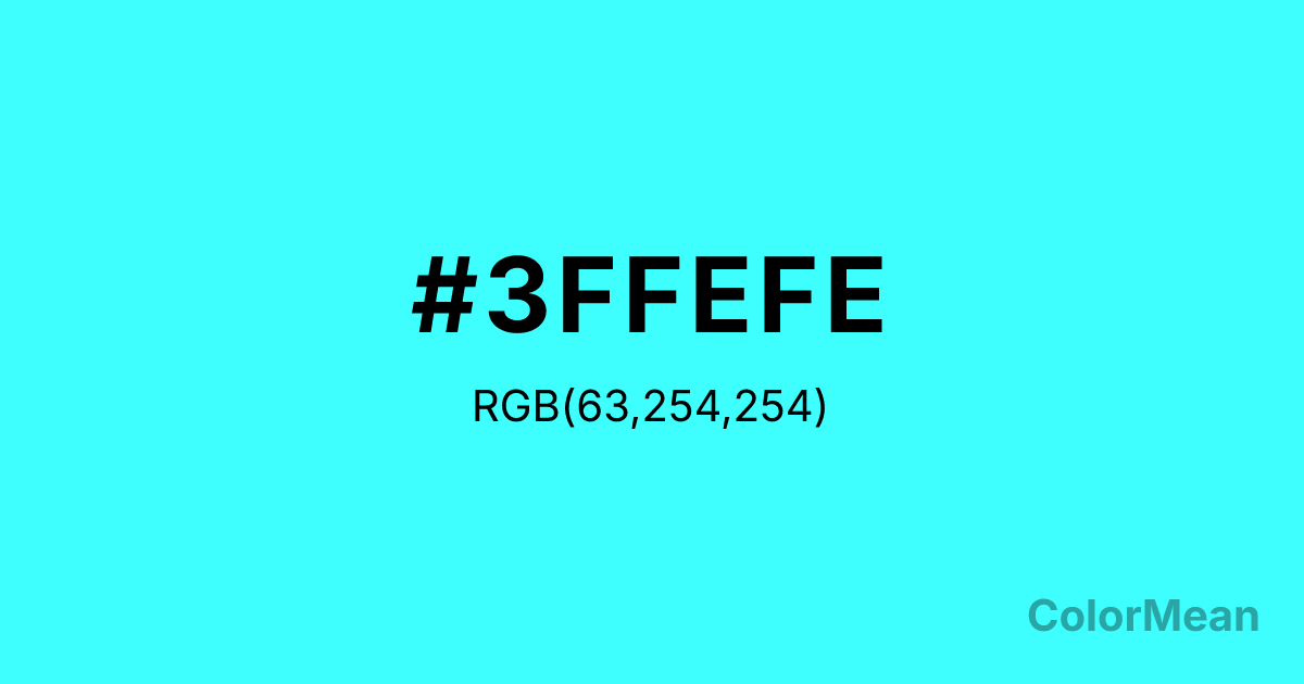 Color swatch image showing #3FFEFE with RGB(63,254,254) values
