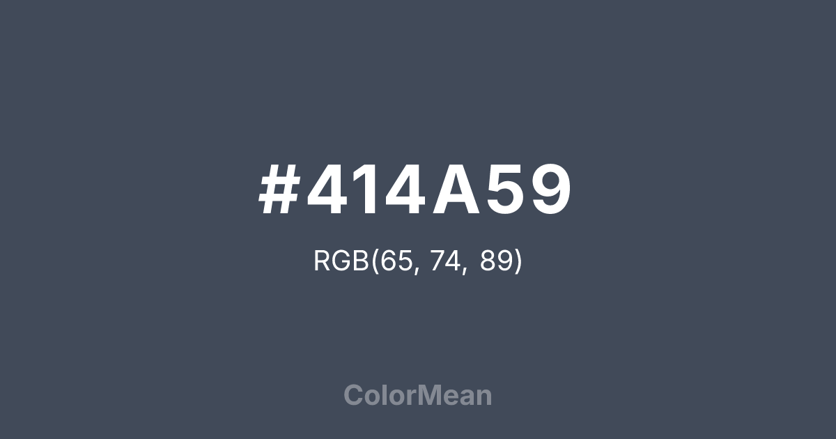 #414A59 RGB value is (65, 74, 89). The hex color red value is 65, green is 74, and blue is 89. Its HSL format shows a hue of 218°, saturation of 16 percent, and lightness of 30 percent. The CMYK process values are 27 percent, 17 percent, 0 percent, 65 percent.