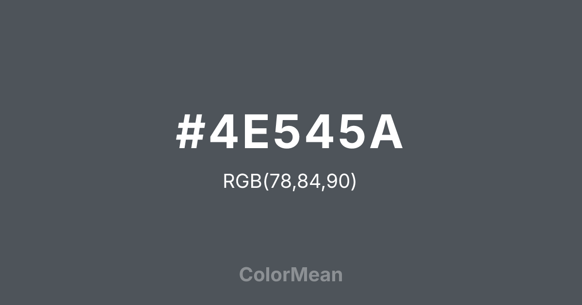 #4E545A RGB value is (78, 84, 90). The hex color red value is 78, green is 84, and blue is 90. Its HSL format shows a hue of 210°, saturation of 7 percent, and lightness of 33 percent. The CMYK process values are 13 percent, 7 percent, 0 percent, 65 percent.