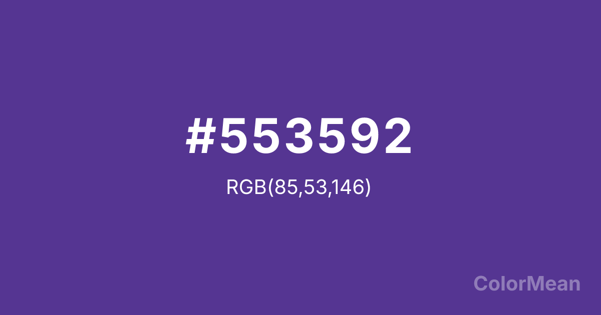 Convert Blue Magenta Violet (#553592) across different color models and formats. These conversions help designers work seamlessly between digital and print media, ensuring this color maintains its intended appearance across RGB screens, CMYK printers, and HSL color manipulations.
