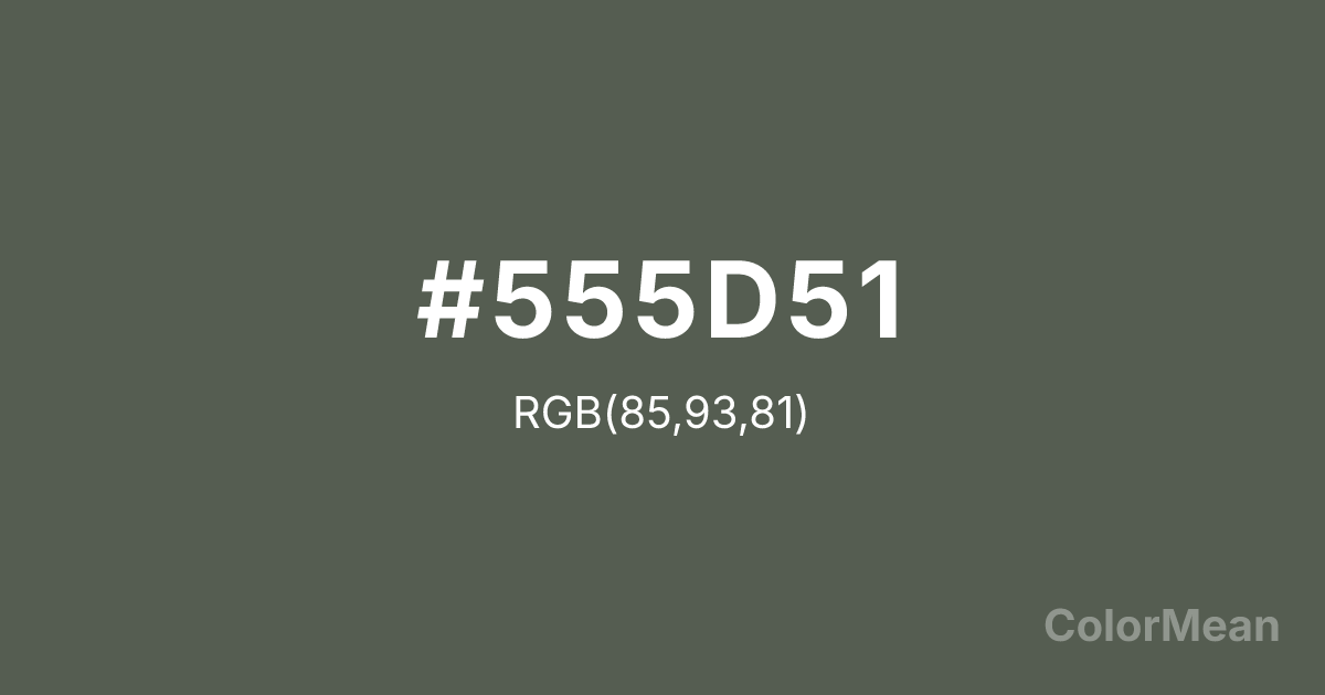 Color swatch image showing #555D51 with RGB(85,93,81) values