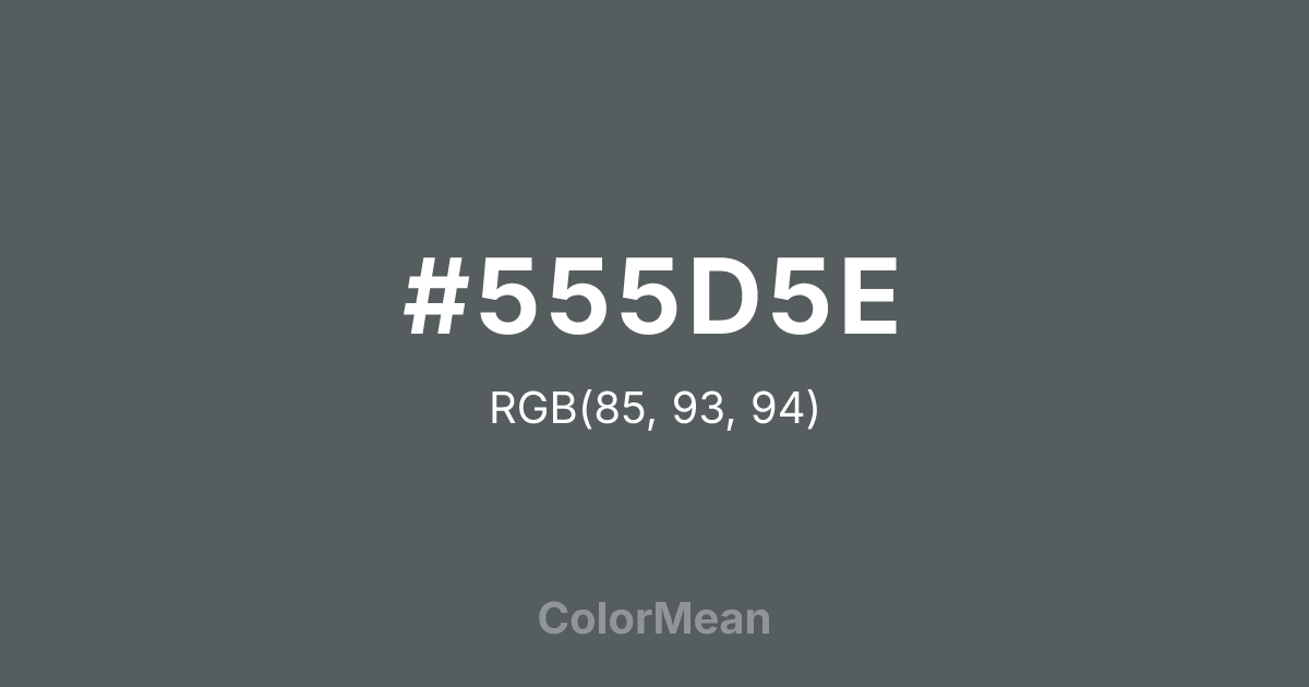#555D5E RGB value is (85, 93, 94). The hex color red value is 85, green is 93, and blue is 94. Its HSL format shows a hue of 187°, saturation of 5 percent, and lightness of 35 percent. The CMYK process values are 10 percent, 1 percent, 0 percent, 63 percent.