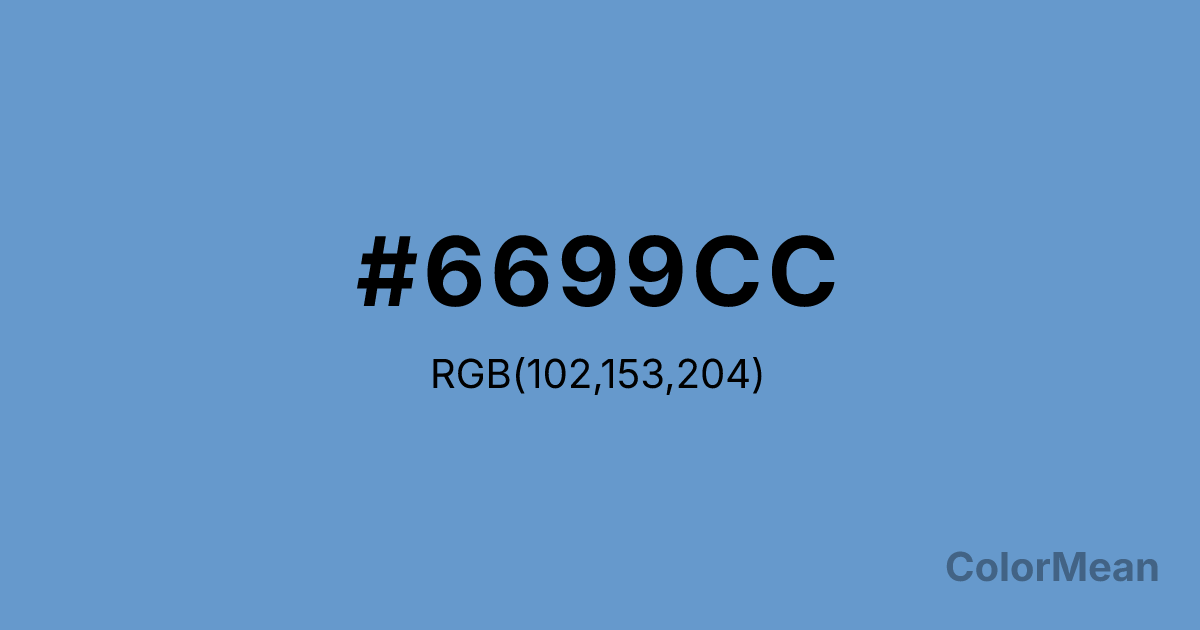 Livid (#6699CC) RGB value is (102, 153, 204). The hex color red value is 102, green is 153, and blue is 204. Its HSL format shows a hue of 210°, saturation of 50 percent, and lightness of 60 percent. The CMYK process values are 50 percent, 25 percent, 0 percent, 20 percent.
