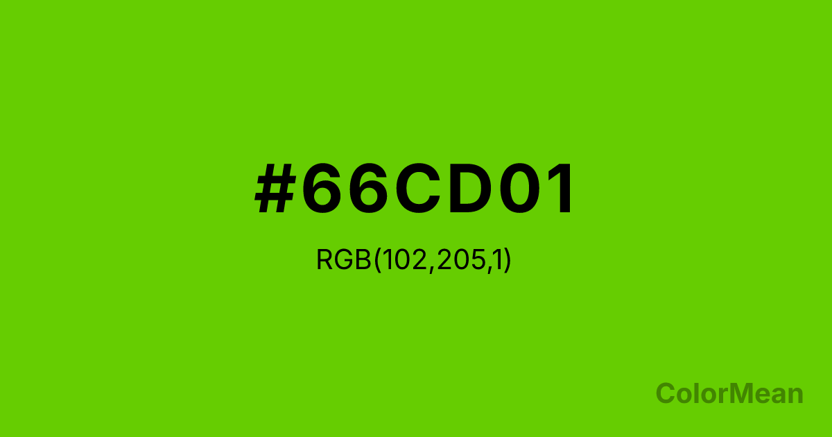 Color swatch image showing #66CD01 with RGB(102,205,1) values