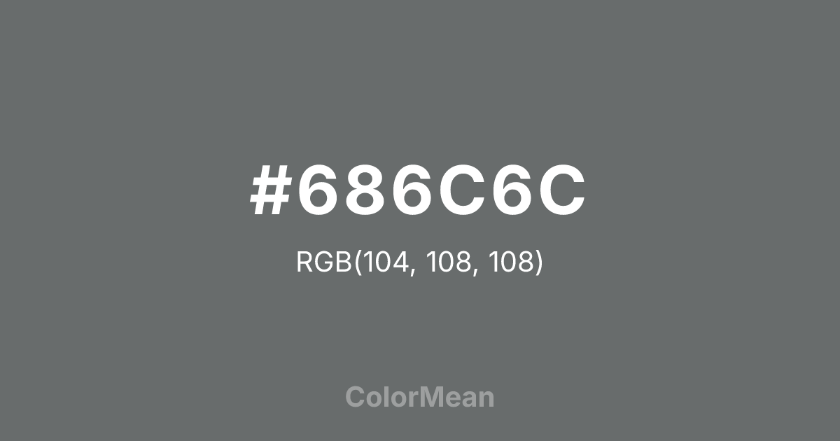 #686C6C RGB value is (104, 108, 108). The hex color red value is 104, green is 108, and blue is 108. Its HSL format shows a hue of 180°, saturation of 2 percent, and lightness of 42 percent. The CMYK process values are 4 percent, 0 percent, 0 percent, 58 percent.