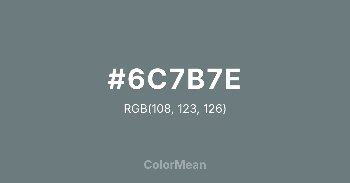 #6C7B7E RGB value is (108, 123, 126). The hex color red value is 108, green is 123, and blue is 126. Its HSL format shows a hue of 190°, saturation of 8 percent, and lightness of 46 percent. The CMYK process values are 14 percent, 2 percent, 0 percent, 51 percent.