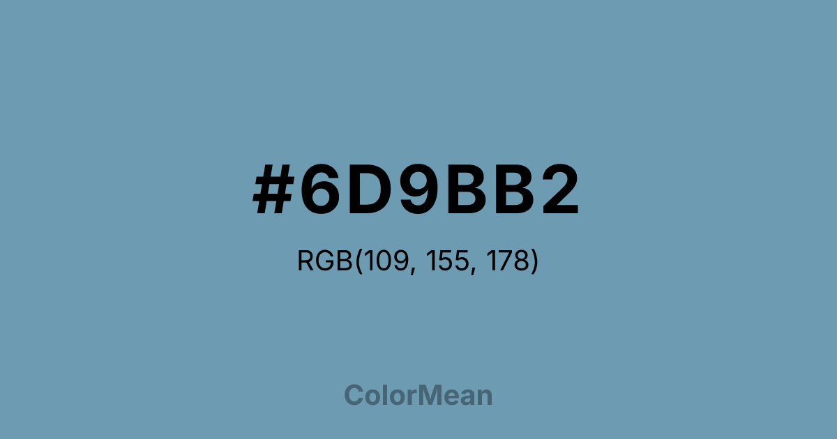 #6D9BB2 RGB value is (109, 155, 178). The hex color red value is 109, green is 155, and blue is 178. Its HSL format shows a hue of 200°, saturation of 31 percent, and lightness of 56 percent. The CMYK process values are 39 percent, 13 percent, 0 percent, 30 percent.