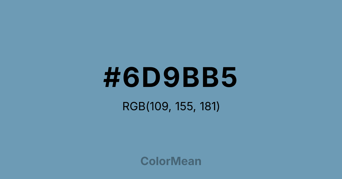 #6D9BB5 RGB value is (109, 155, 181). The hex color red value is 109, green is 155, and blue is 181. Its HSL format shows a hue of 202°, saturation of 33 percent, and lightness of 57 percent. The CMYK process values are 40 percent, 14 percent, 0 percent, 29 percent.