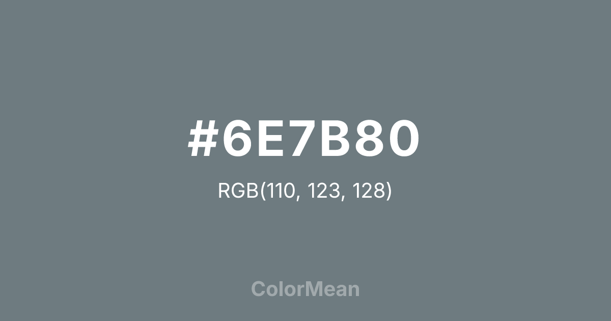 #6E7B80 RGB value is (110, 123, 128). The hex color red value is 110, green is 123, and blue is 128. Its HSL format shows a hue of 197°, saturation of 8 percent, and lightness of 47 percent. The CMYK process values are 14 percent, 4 percent, 0 percent, 50 percent.