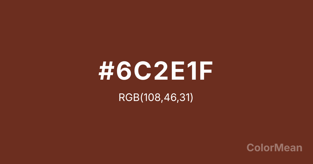 Liver (Organ) (#6C2E1F) RGB value is (108, 46, 31). The hex color red value is 108, green is 46, and blue is 31. Its HSL format shows a hue of 12°, saturation of 55 percent, and lightness of 27 percent. The CMYK process values are 0 percent, 57 percent, 71 percent, 58 percent.