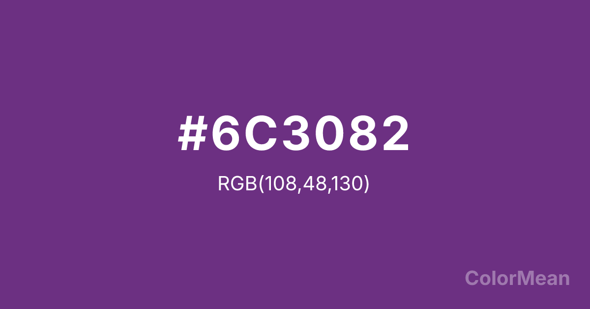 Eminence (#6C3082) RGB value is (108, 48, 130). The hex color red value is 108, green is 48, and blue is 130. Its HSL format shows a hue of 284°, saturation of 46 percent, and lightness of 35 percent. The CMYK process values are 17 percent, 63 percent, 0 percent, 49 percent.