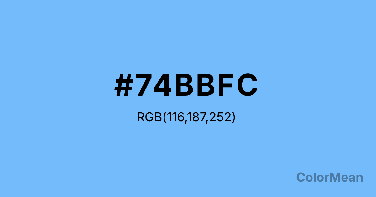 Color swatch image showing #74BBFC with RGB(116,187,252) values