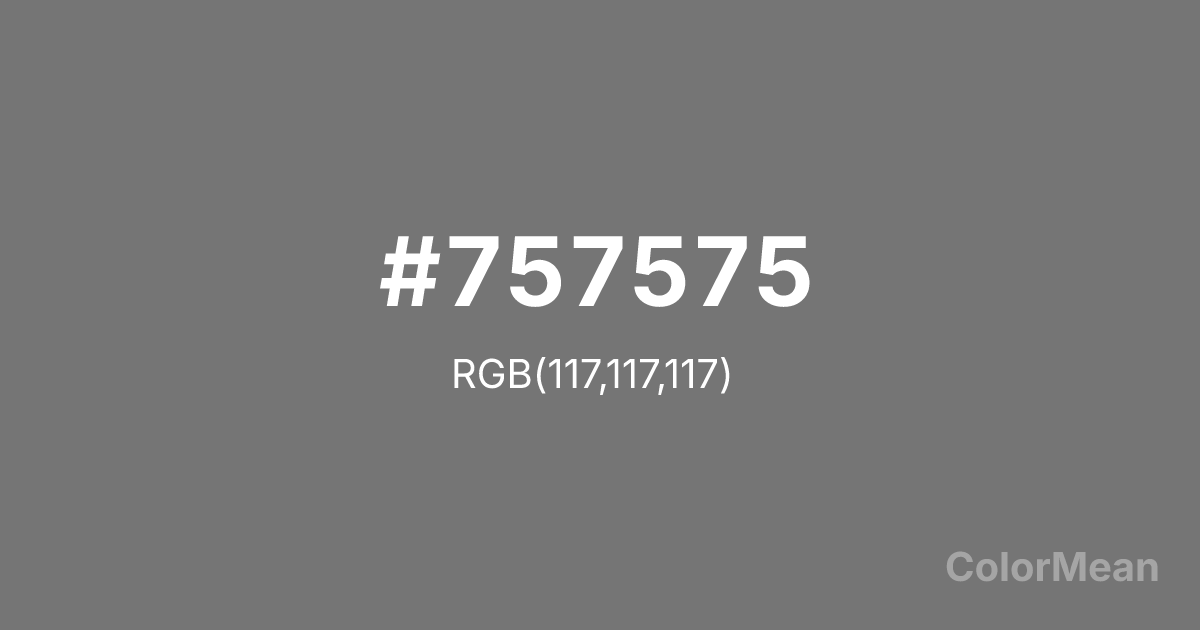 Sonic Silver (#757575) RGB value is (117, 117, 117). The hex color red value is 117, green is 117, and blue is 117. Its HSL format shows a hue of 0°, saturation of 0 percent, and lightness of 46 percent. The CMYK process values are 0 percent, 0 percent, 0 percent, 54 percent.