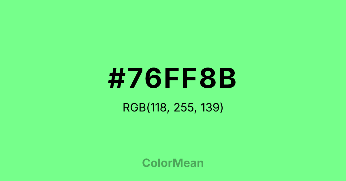 Color swatch image showing #76FF8B with RGB(118,255,139) values