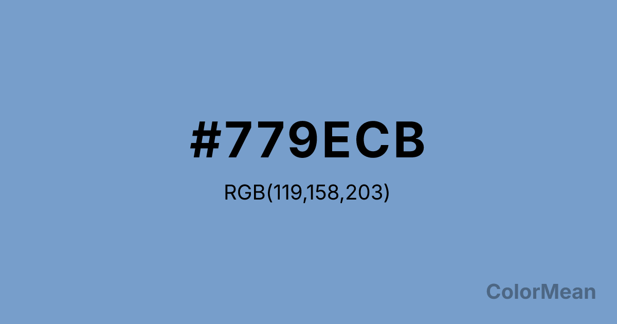 Dark Pastel Blue (#779ECB) RGB value is (119, 158, 203). The hex color red value is 119, green is 158, and blue is 203. Its HSL format shows a hue of 212°, saturation of 45 percent, and lightness of 63 percent. The CMYK process values are 41 percent, 22 percent, 0 percent, 20 percent.