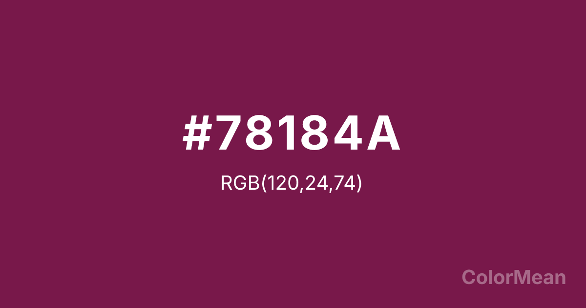 Pansy Purple (#78184A) RGB value is (120, 24, 74). The hex color red value is 120, green is 24, and blue is 74. Its HSL format shows a hue of 329°, saturation of 67 percent, and lightness of 28 percent. The CMYK process values are 0 percent, 80 percent, 38 percent, 53 percent.