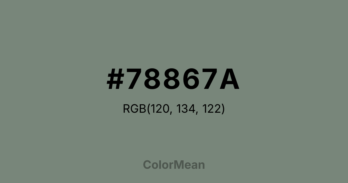 Color swatch image showing #78867A with RGB(120,134,122) values