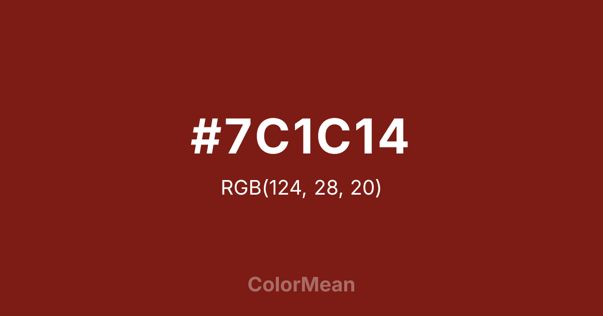 Color swatch image showing #7C1C14 with RGB(124,28,20) values