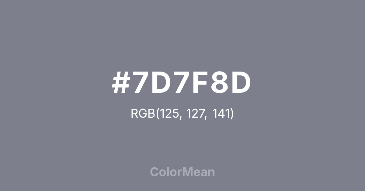 #7D7F8D RGB value is (125, 127, 141). The hex color red value is 125, green is 127, and blue is 141. Its HSL format shows a hue of 232°, saturation of 7 percent, and lightness of 52 percent. The CMYK process values are 11 percent, 10 percent, 0 percent, 45 percent.