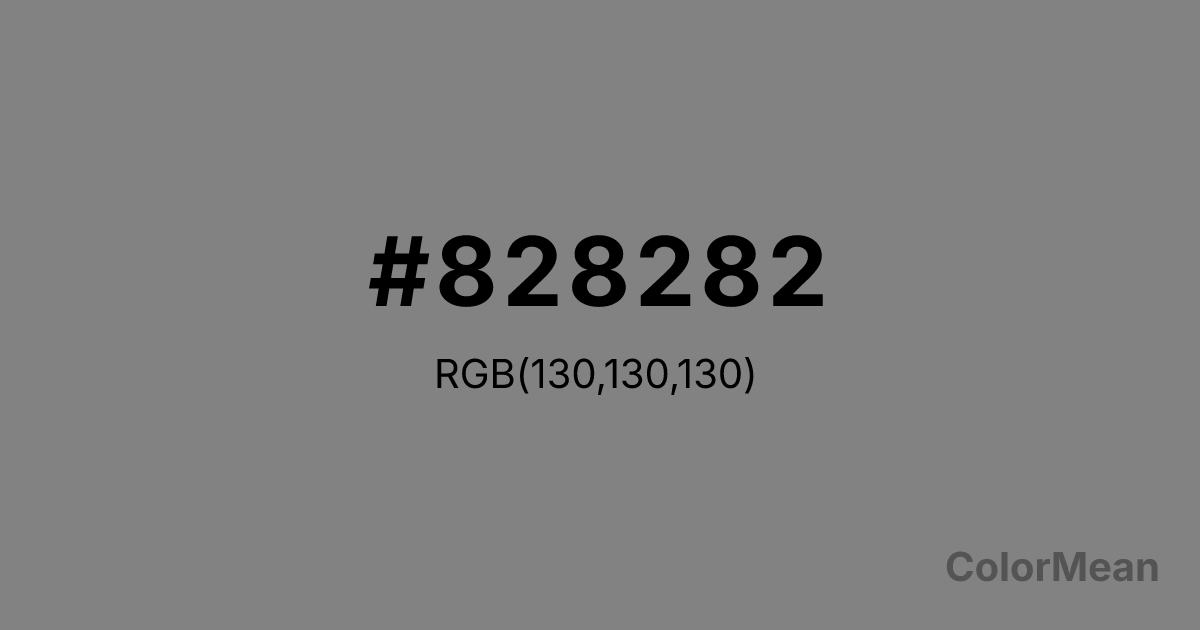 Pearl Dark Grey (#828282) RGB value is (130, 130, 130). The hex color red value is 130, green is 130, and blue is 130. Its HSL format shows a hue of 0°, saturation of 0 percent, and lightness of 51 percent. The CMYK process values are 0 percent, 0 percent, 0 percent, 49 percent.
