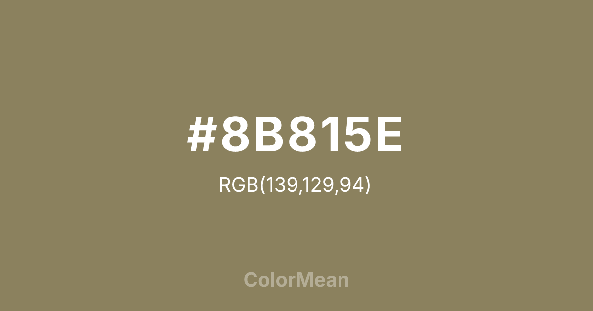 #8B815E RGB value is (139, 129, 94). The hex color red value is 139, green is 129, and blue is 94. Its HSL format shows a hue of 47°, saturation of 19 percent, and lightness of 46 percent. The CMYK process values are 0 percent, 7 percent, 32 percent, 45 percent.